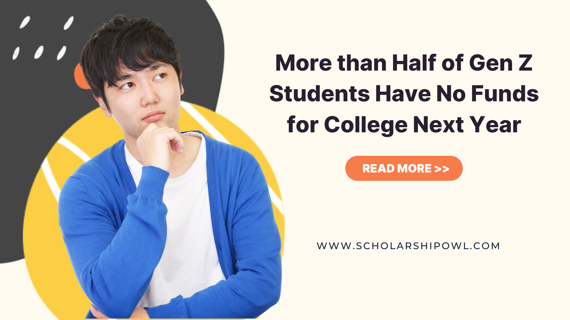Every month, ScholarshipOwl conducts surveys to help us to gain a deeper understanding of Gen Z, especially regarding their readiness for college. Given the current economic conditions, we decided to focus last month’s survey on students’ ability to afford college in the coming school year. We had anticipated that the majority of students would not yet have the funds needed, but we were stunned to learn that over half (56%) of the students said that they have not yet secured any funds at all from scholarships, federal or state grants, income from a job, personal savings or funds from family for college next year.